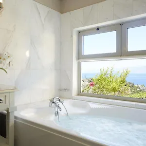 Pleiades Luxurious Villas enjoys the views of Mirabello Bay. This accommodation also comes with an en-suite bathroom equipped with a bathtub and a shower cabin.
